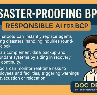 This paper examines how the 2025 Cebu earthquake exposed critical flaws in Philippine BPO companies’ business continuity plans—particularly the prioritization of service-level agreements over employee safety—and argues that integrating artificial intelligence (e.g., chatbots, cloud-based disaster routing, AI copilots) can enhance resilience while safeguarding workers, aligning with global standards like ISO 22301 and Philippine OSH laws.